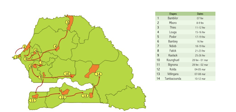 Au programme : une expédition de 34 jours (du 7 février au 12 mars 2022) et 14 étapes au cœur du Sénégal rural dans le but de consulter les actrices et acteurs engagés dans la transition agroécologique.