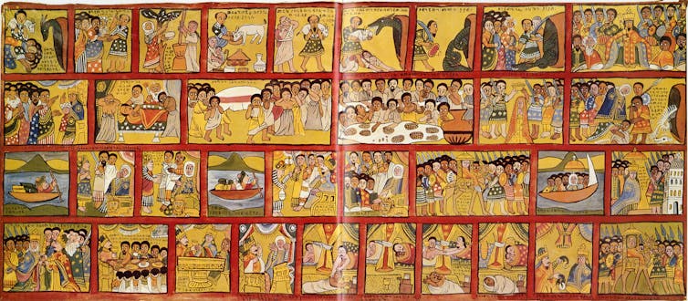 L’État salomonien d’Éthiopie (1270-1974) s’est construit sur cette double référence religieuse et topographique. Dès la première moitié du XIVe siècle, le lien avec l’ancienne Aksum avait été établi, tout comme l’ascendance biblique des rois éthiopiens, que le mythe national – le Kebrä Nägäst (« Noblesse des Rois ») – affirmait en invoquant l’épisode de la visite de la reine de Saba auprès du roi Salomon.