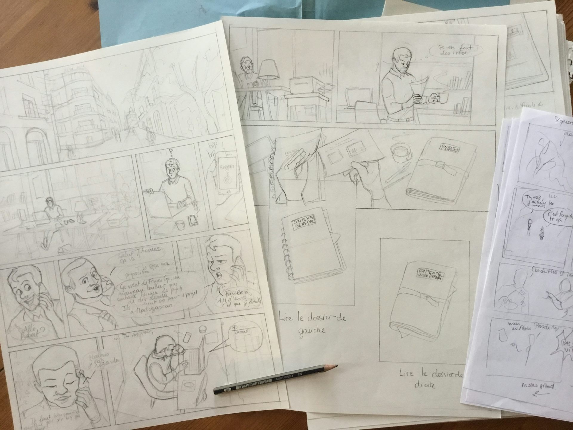 L’illustratrice Caroline Gaujour a commencé par adapter le scénario interactif en story-board en s’aidant de photos de références de terrain. Elle a ensuite créé les visuels des différents personnages, puis élaboré les 35 planches de BD nécessaires à traduire l’histoire en dessins. Le lecteur y partage l’expérience de Thomas, un jeune consultant international.